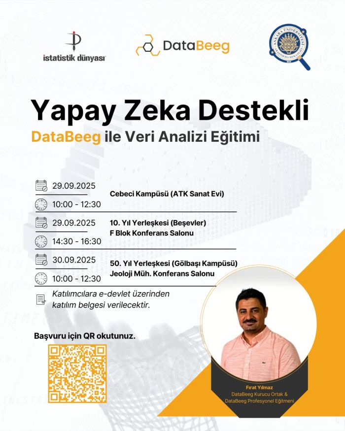 Ankara Üniversitesi personeli ve öğrencilerinin katılımına açık olarak, 7 Ekim 2025 tarihinde 10:30-11:30 arası "SPSS Statistics ile Veri Analizine Giriş" [...]