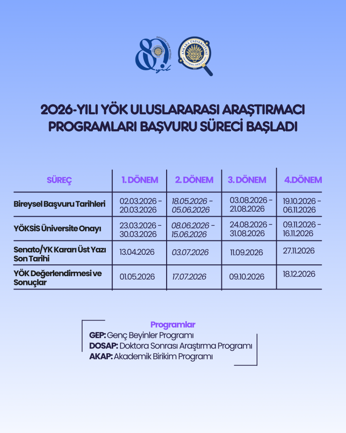 2026-Yılı Yükseköğretim Kurulu Uluslararası Araştırmacı Programları (AKAP, DOSAP, GEP) Başvuru Süreci Başladı