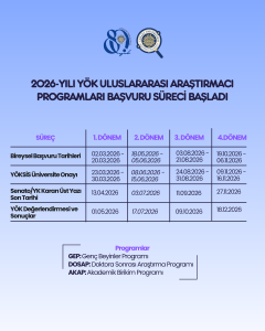 Ayrıntılı Bilgi İçin:  https://www.yok.gov.tr/tr/announcements/yokten-uluslararasi-arastirma-programlari-2026-yili-basvuru-takvimi-duyurusu-IEBs4